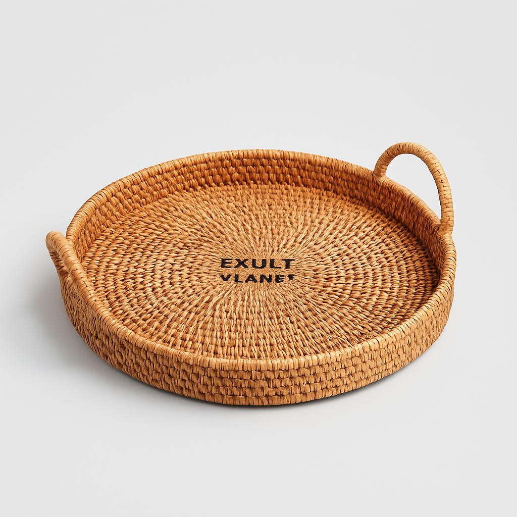 Transform your space with our eco-friendly round woven tray, designed for sustainability and style